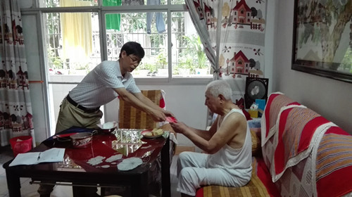 寒暑假看望、慰问老同志是离退处多年保持和传承的优良传统。7月初,利用在长沙开会的机会,欧阳大文处长陪同主管离退休工作的校党委曹晓鲜副书记看望了在长居住的部分离退休老同志,此次慰问主要是针对居住在吉首地区的63位老同志。他们住的比较分散,有的随子女居住,有的常年住在医院,离退处的同志只能顶着烈日,冒着酷暑从一个小区到另一个小区,从一栋楼房到另一栋楼房,一家家、一户户地走访、看望,把离退处的关心和情意,送到这些老同志的手中,虽然汗水湿透了他们的衣衫,中饭也没顾上吃,但看到老同志一直拉着舍不得放开的手,听着老同志一句句感谢的话,什么苦、累、热全抛开了,留下的只是满满的沁人心扉的甜。